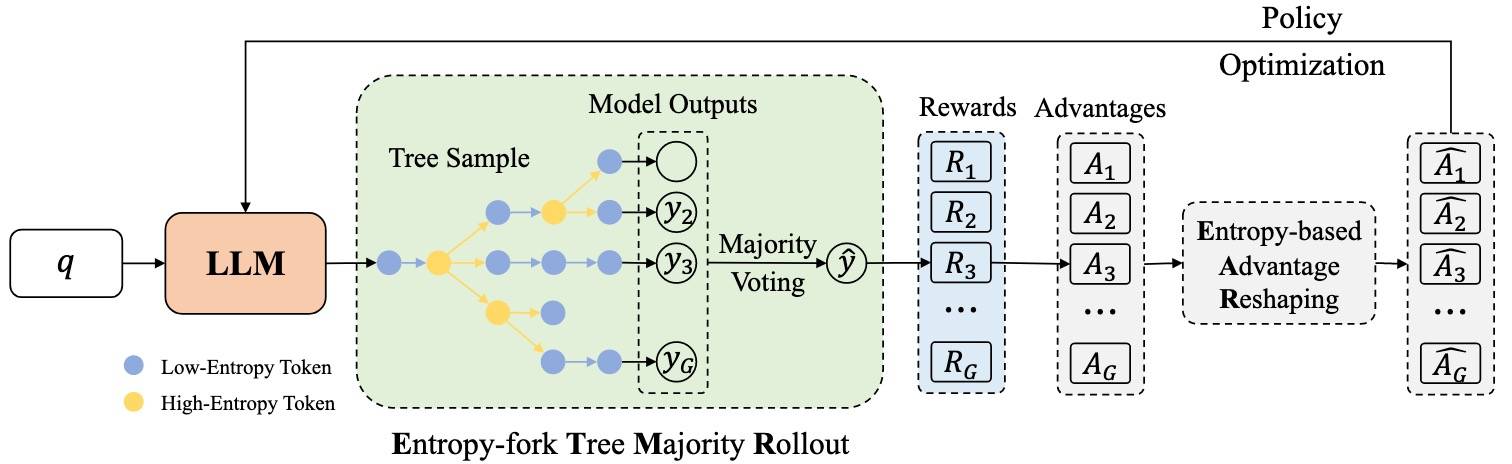 • ETTRL 通过高熵 token 分支 rollout 与基于熵的 advantage 重塑,缓解早期过度自信。