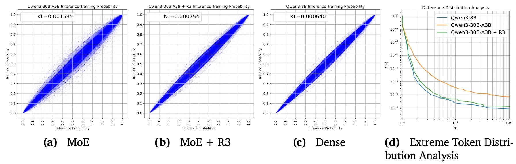 • 核心矛盾:MoE 模型对输入极度敏感,训练引擎与推理引擎在算子实现、数值精度上的微小差异,会导致同一 Token 在两端选择不同的专家。