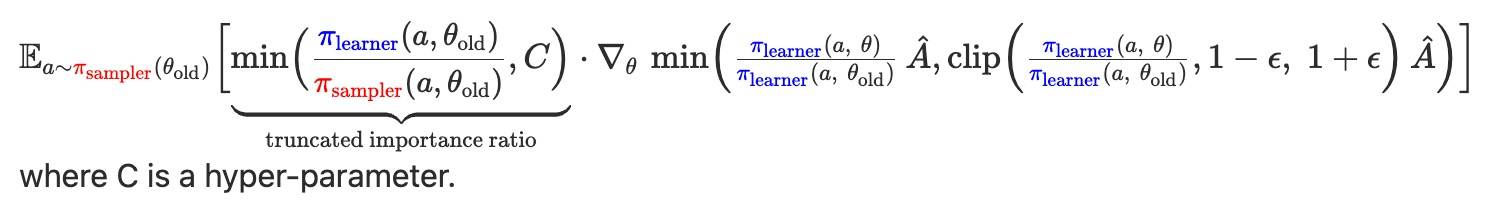 公式表达了一切信息,前面是新增的 TIS 系数,后面是 PPO 目标,θ 是 policy 参数。