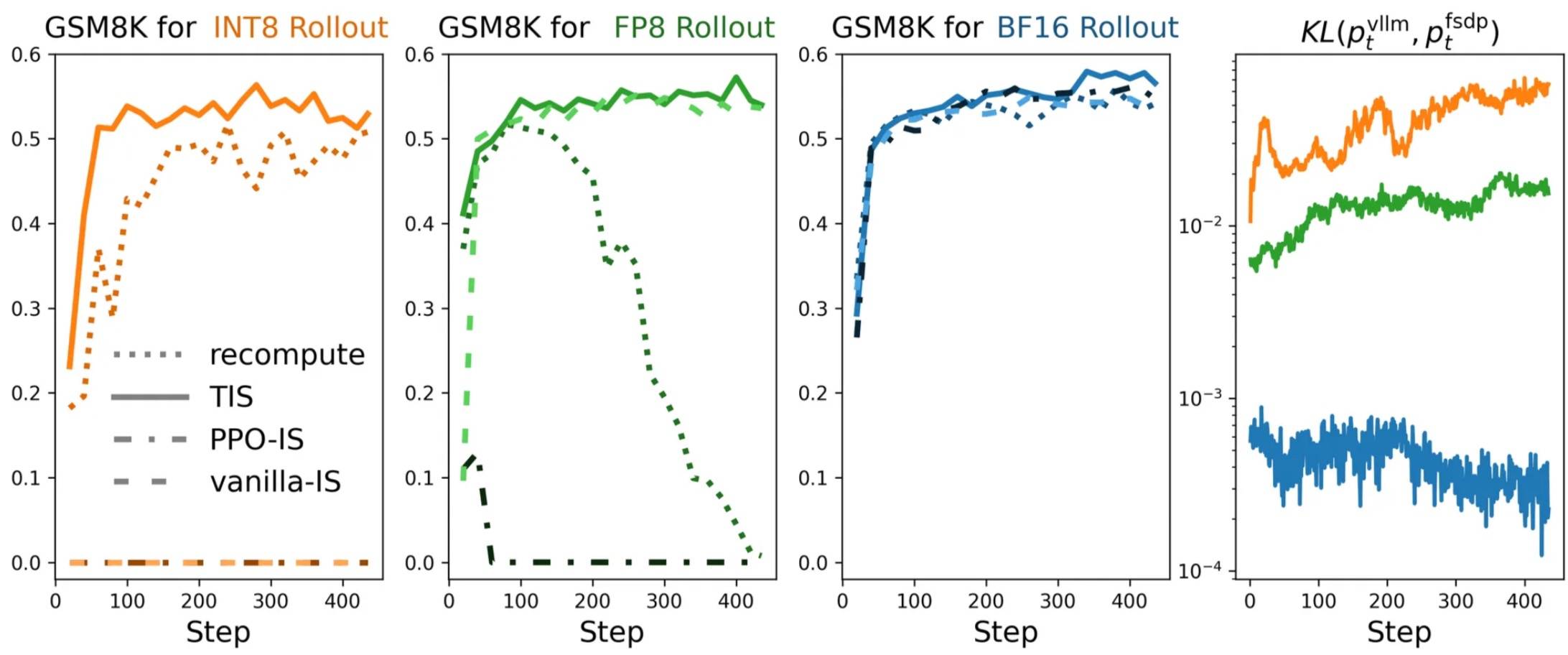 带来的结果就是训推概率分布的不一致(用 KL K3 计算衡量),