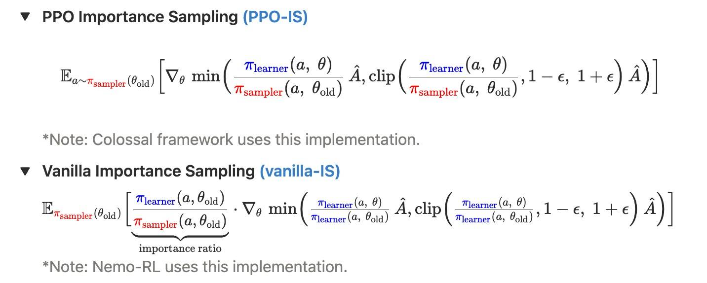 在 RL 时,训练和推理经常是不同的引擎,比如推理用 VLLM 或 SGLang,训练用 FSDP 或 Megatron。这就导致 rollout 时的分布和训练时的需要的分布可能不一样。有同学可能会问了,rollout 只是采样轨迹呀,怎么和后面的更新参数、计算 log_prob 有关呢?嘿,在 RL 中,它们不仅有关,还强耦合。因为在损失函数有个很重要的前提:期望是在策略上取的,trace 从哪个策略采样,本身就是目标函数的一部分。rollout 看似在生成数据,其实是定义一个行为分布。后面的计算 log_prob 是应该在选定分布上进行。