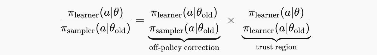 来自《2508 Your Efficient RL Framework Secretly Brings You Off-Policy RL Training | Notion[4]》,其方案是:调整模型更新方式,使其感知到这种训推不匹配。具体做法很简单,对重要性采样(比率)进行校正,经典的做法是“截断”——在原目标前面乘一个截断的重要性比率系数。