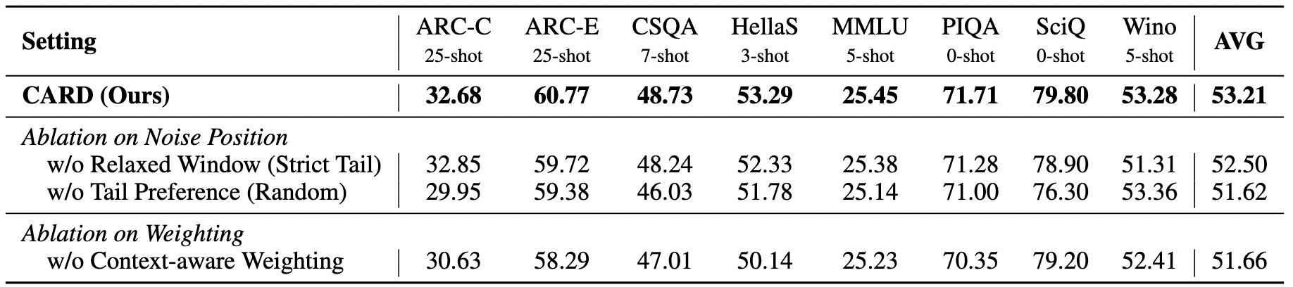 为了解决 causal diffusion 的稳定性问题,CARD 提出了 soft-tailed 掩码机制和一个上下文敏感 reweighting 机制。